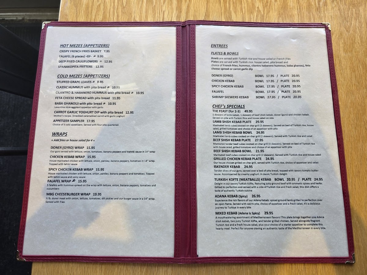 ½ lb. doner meat with onion, lettuce, tomatoes, dill pickles and our burger sauce in a 14” wrap. Served with fries